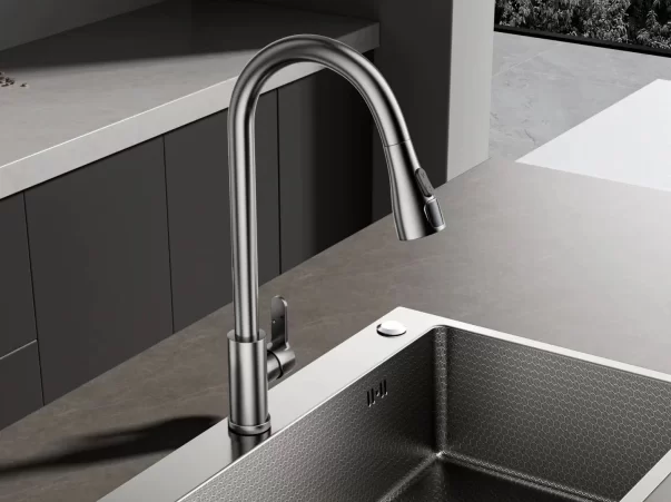 Featuring an intuitive control panel, the sink offers one-touch operation for effortless use. The system is designed for quiet performance and energy efficiency, making it suitable for both commercial and residential applications.