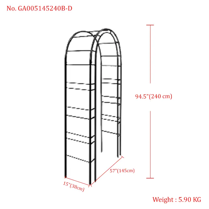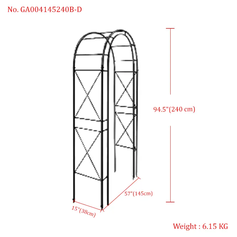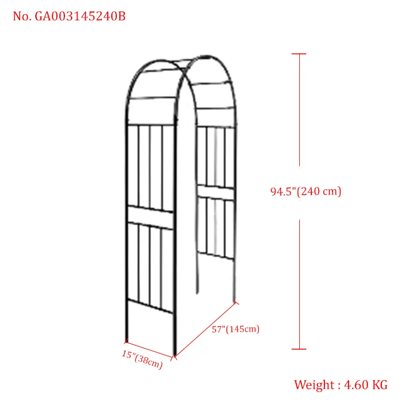 Built to withstand the elements year after year, this garden arch features heavy-duty steel with a black powder-coated finish. The weather-resistant design prevents rusting, even through rain, sunlight, and temperature fluctuations—ensuring it maintains its sleek appearance and structural strength for long-term use. Self-assembly is required, allowing you to set it up easily to match your garden’s unique layout.