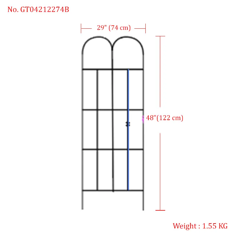 Elevate your outdoor oasis with our steel garden trellis—the ultimate solution for supporting climbing plants while adding striking visual appeal to your garden, patio, or backyard. Perfect for roses, clematis, ivy, and morning glories, this durable structure combines functionality with timeless design, making it a must-have for any green space. Crafted from high-grade metal, our trellis is built to withstand harsh weather—rain, wind, and UV rays—ensuring long-lasting performance season after season. Unlike weak wooden or plastic alternatives, its sturdy frame resists bending, warping, and rust, providing reliable climbing plant support as your blooms grow and thrive. Customization meets convenience: choose from our popular standard sizes (as shown in the main image) or request a tailored dimension to fit your unique space—whether you need a compact trellis for a balcony or a tall structure for a garden wall. Add a personal touch with our range of powder-coated finishes, including sleek black, rustic bronze, or vibrant green, designed to complement your landscape and match your outdoor decor. Easy to install and low-maintenance, this garden trellis requires no complex tools. Simply anchor it into soil or mount it on a wall, and watch as your plants climb toward the light, creating a stunning vertical garden display that boosts curb appeal and becomes a focal point for guests. Ideal for both novice gardeners and landscaping pros, it transforms ordinary greenery into a lush, eye-catching feature. Upgrade your garden with a trellis that blends strength, style, and versatility. Whether you’re growing flowering vines or creating a privacy screen, our steel garden trellis is designed to grow with your vision. Order now and let your garden reach new heights!